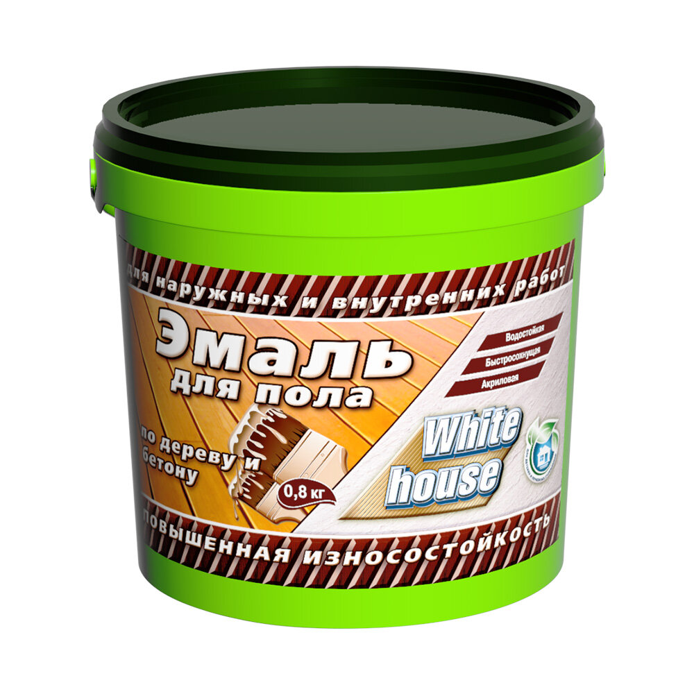 Эмаль Акриловая для Пола White House 0.8кг Белый, Полуматовая Без Запаха / Вайт Хаус.