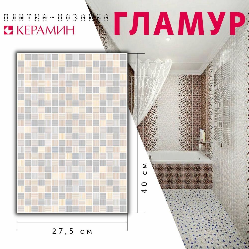 СохранитьПлитка мозаика керамическая Керамин Гламур 7С бежевый 400х275 мм (15 шт 1,65 м2) интересное: