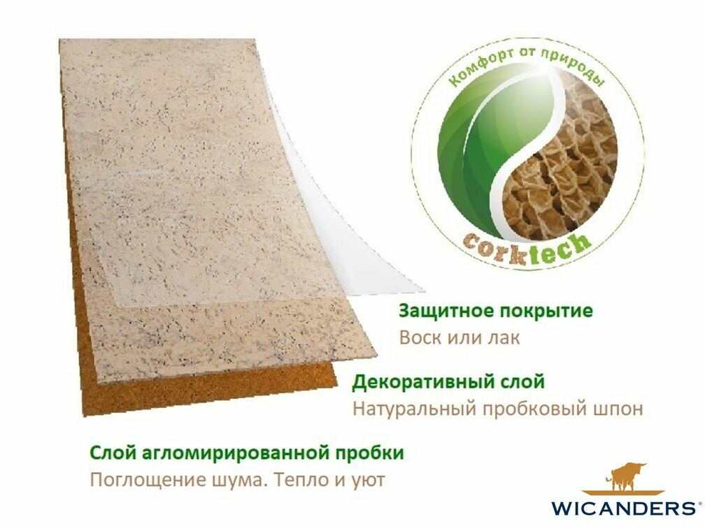 СохранитьКлеевой пробковый пол WICANDERS CORK PURE Identity Timide, в листах 600*300*6 мм, фаска с 4 сторон, 10 листов в упаковке, 3 слоя PU лака (пробковый паркет) интересное: