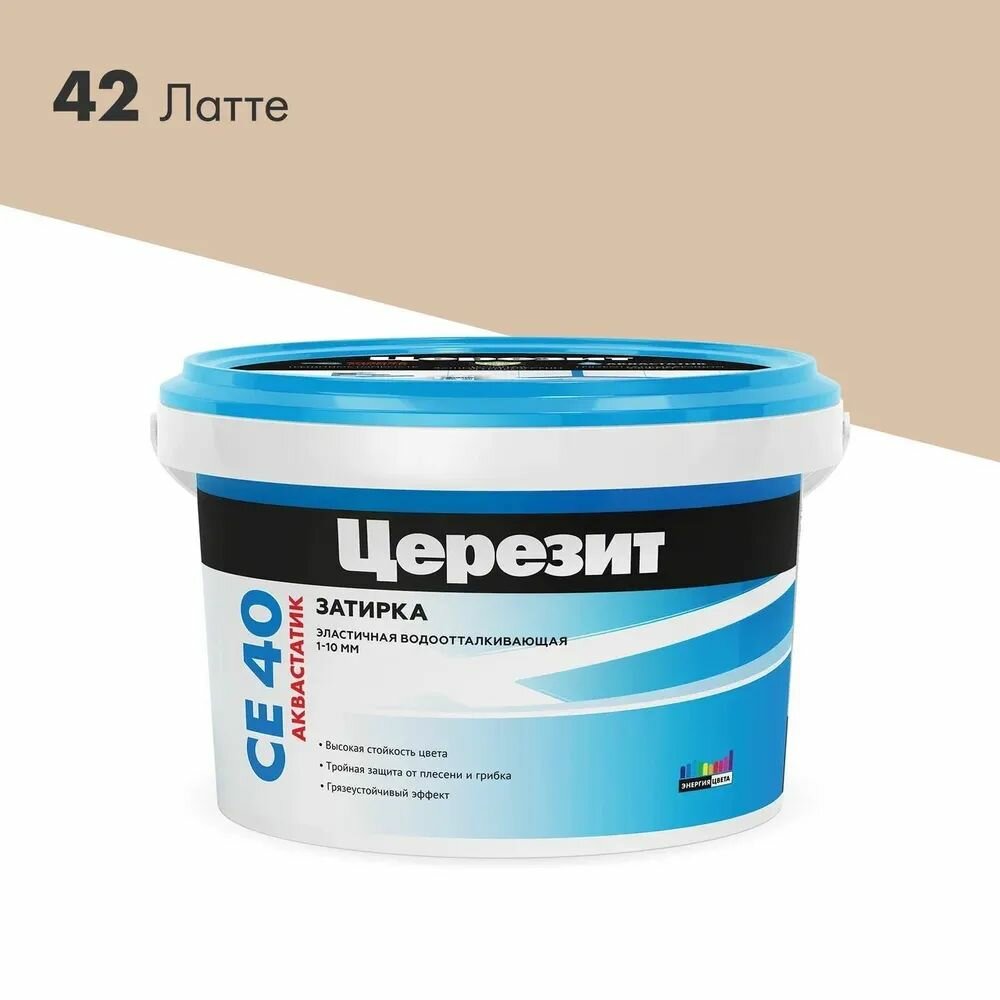 Затирка Ceresit СЕ40 Латте №42, для стыков до 1 см, морозостойкая, 2 кг