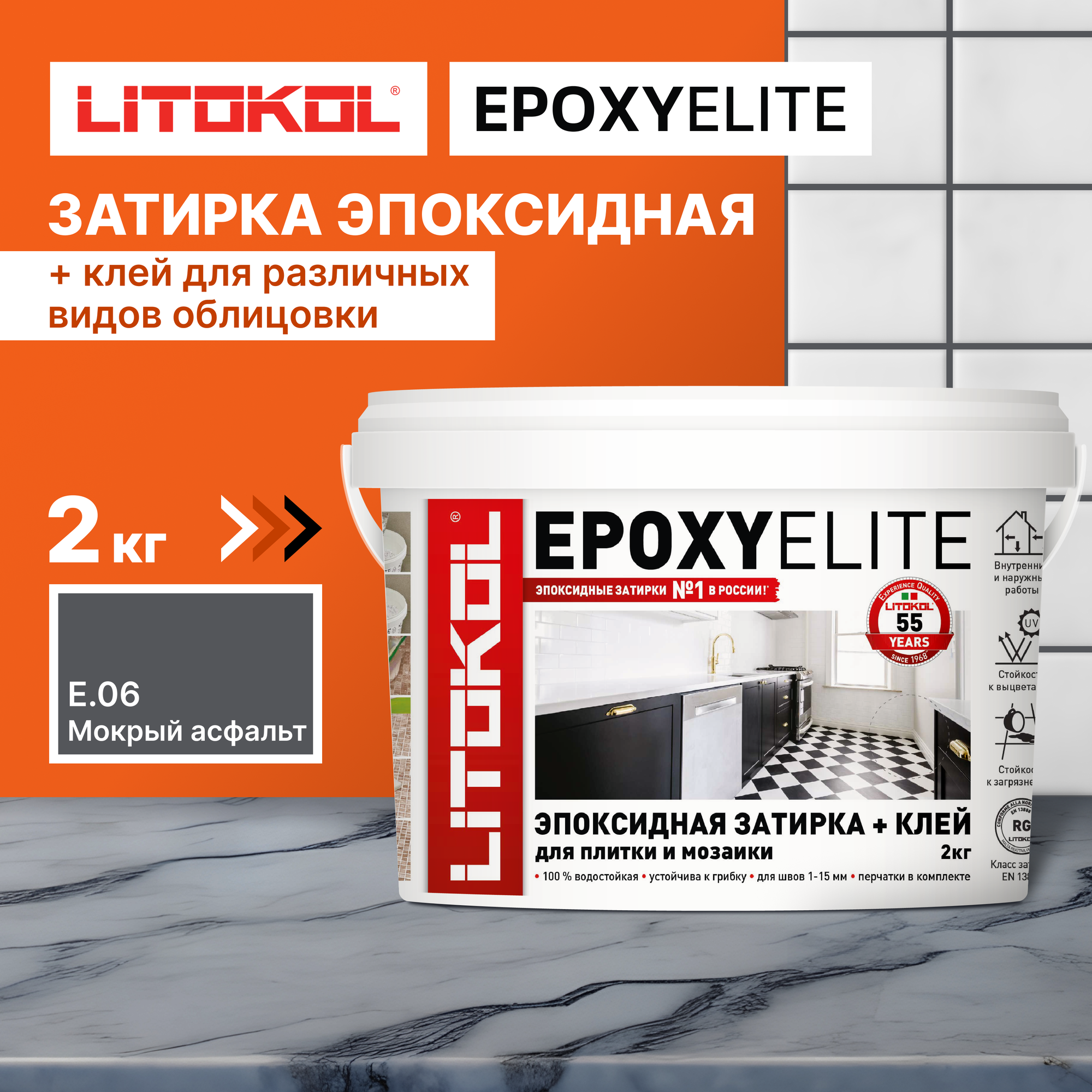 Купить Эпоксидная затирка LITOKOL EpoxyElite E.06 Мокрый асфальт 2 кг