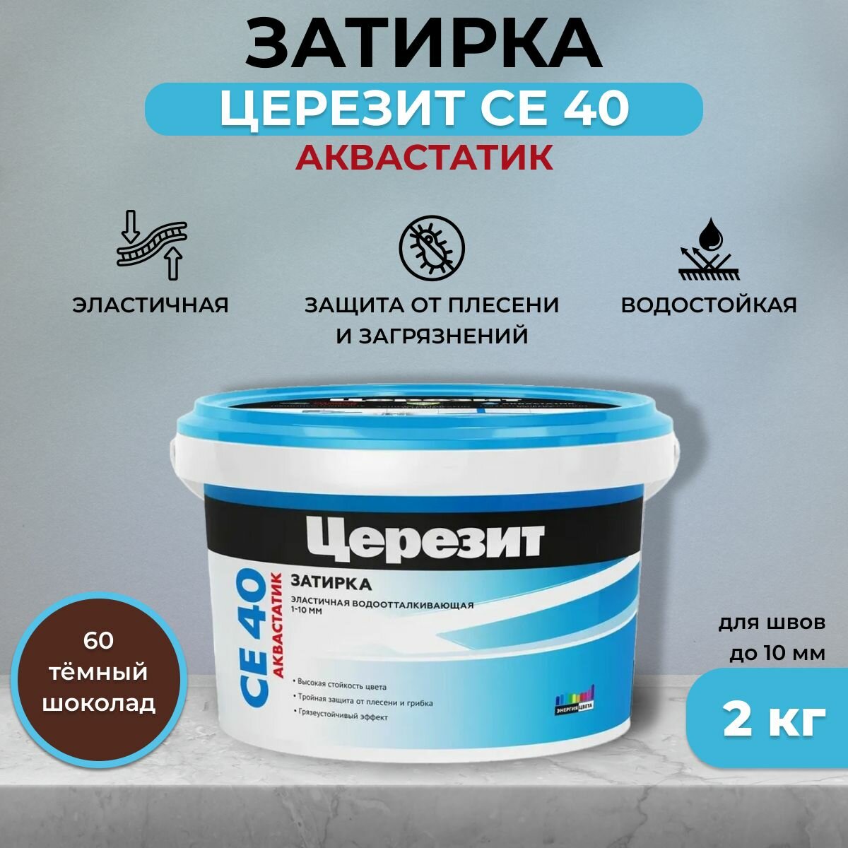 Купить Затирка цементная водоотталкивающая Церезит CE 40 темный шоколад №60, 2 кг