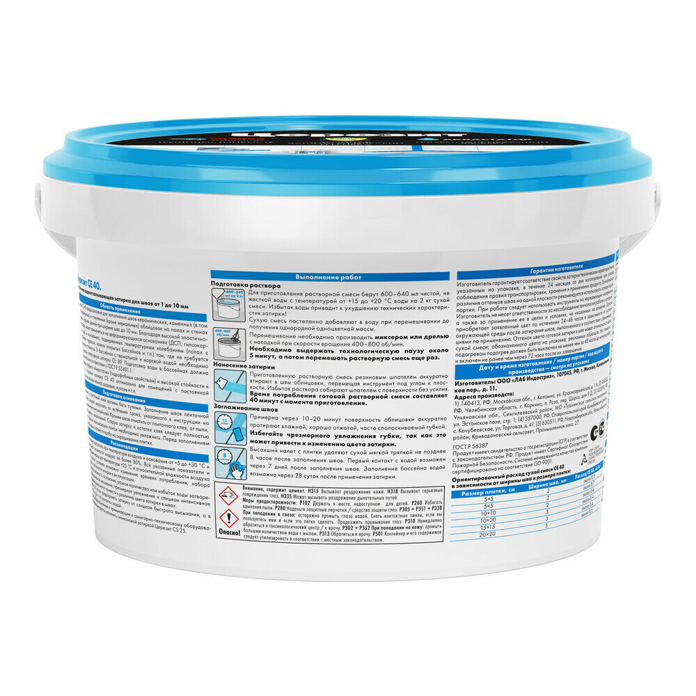 Затирка цементная CE 40 водоотталкивающая небесный 2 кг
