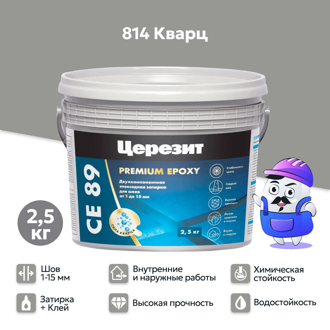 Купить Затирка для швов Церезит СЕ 89 эпоксидная от 1 до 15 мм, эластичная, водоотталкивающая 2,5 кг кварц 814