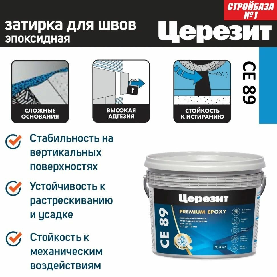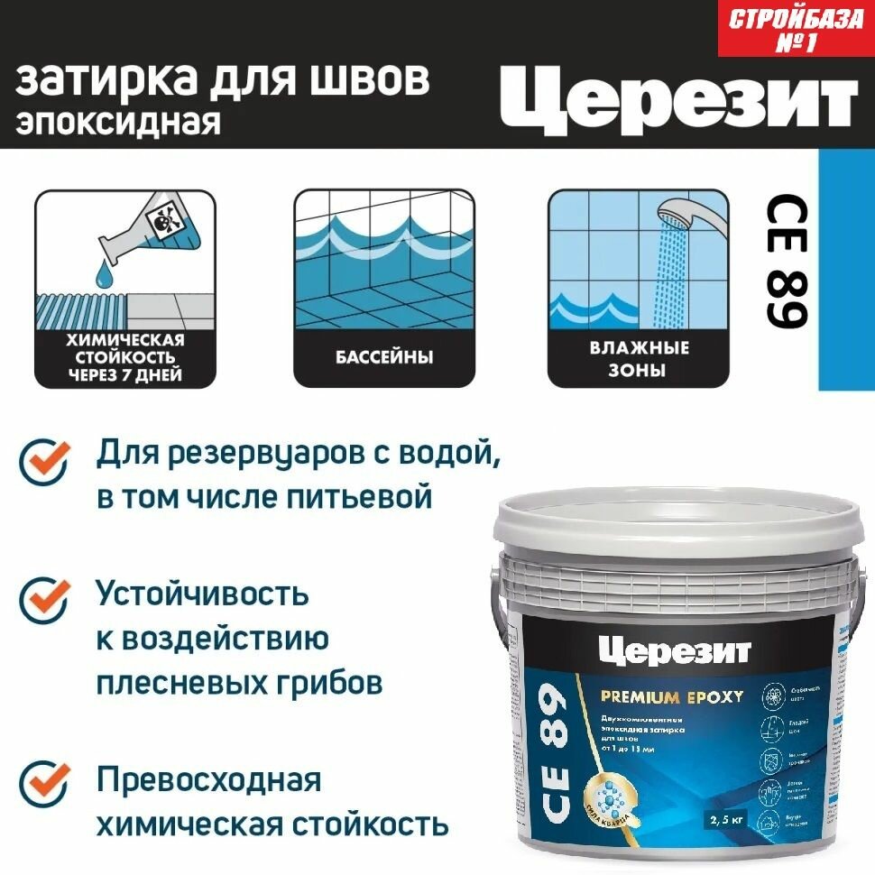 Затирка для швов Церезит СЕ 89 эпоксидная от 1 до 15 мм, эластичная, водоотталкивающая 2,5 кг серый 807