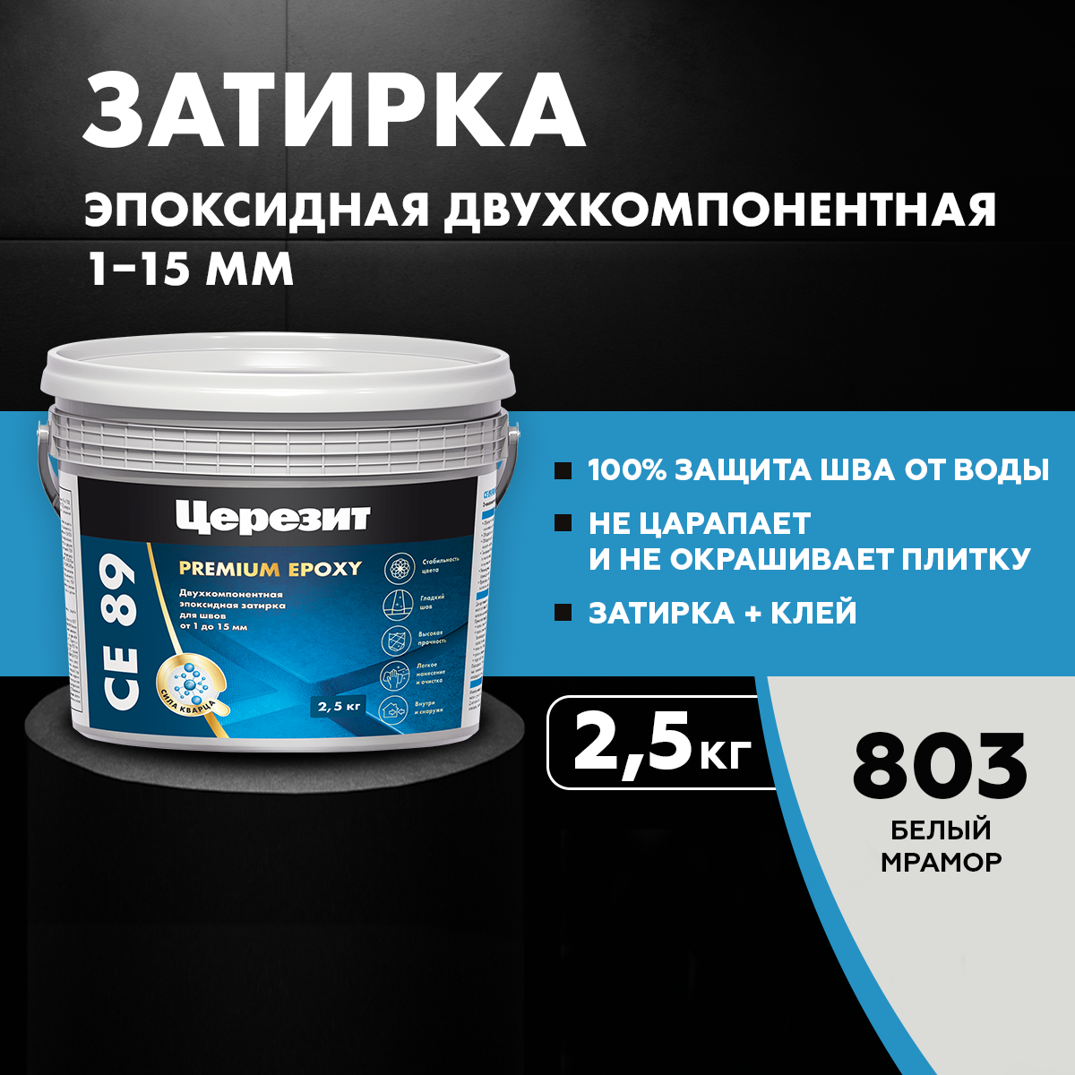 Эпоксидная затирка для плитки Церезит, Ceresit CE 89, для затирки швов, №803 белый мрамор, 2,5 кг