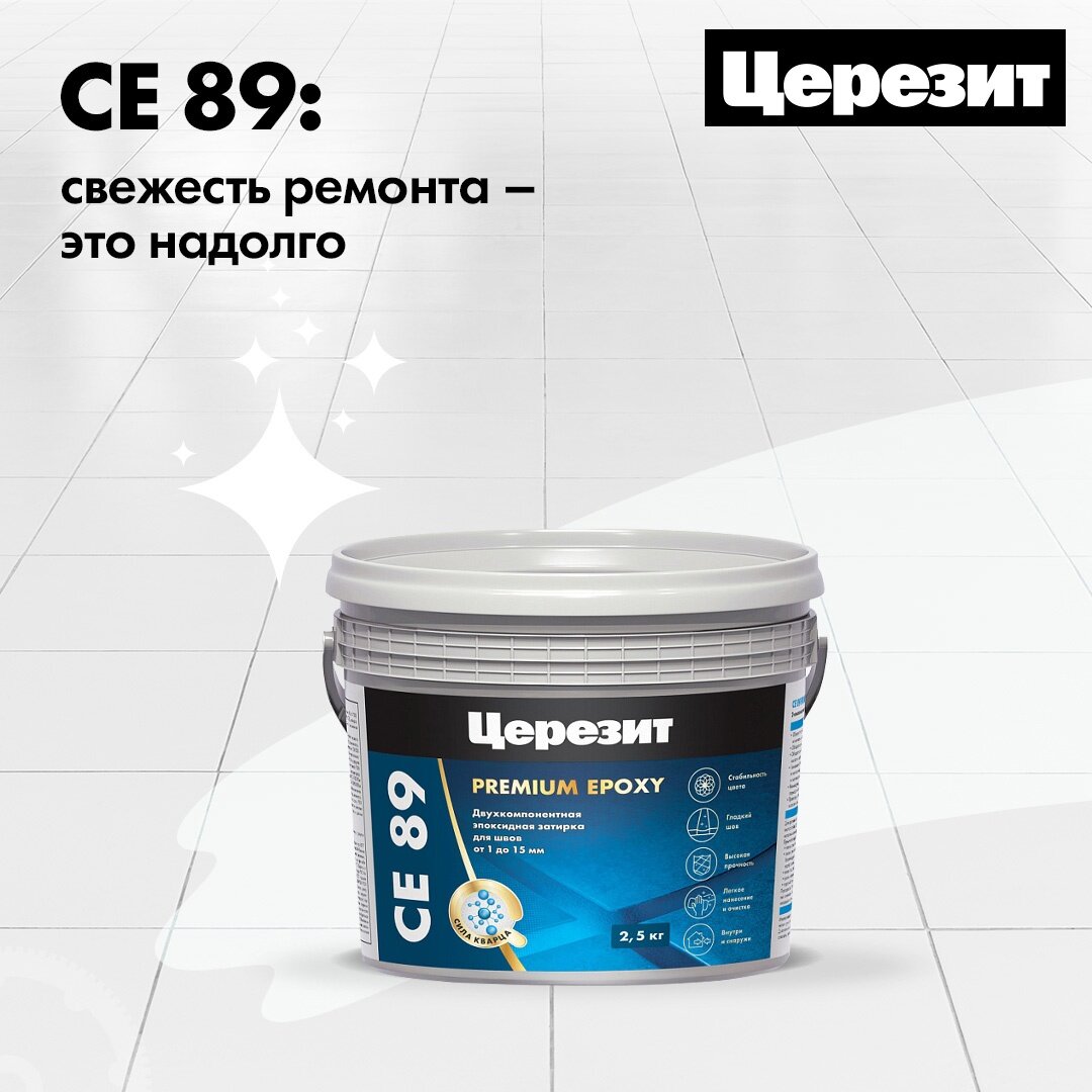 Затирка для швов Церезит СЕ 89 эпоксидная от 1 до 15 мм, эластичная, водоотталкивающая 2,5 кг кварц 814