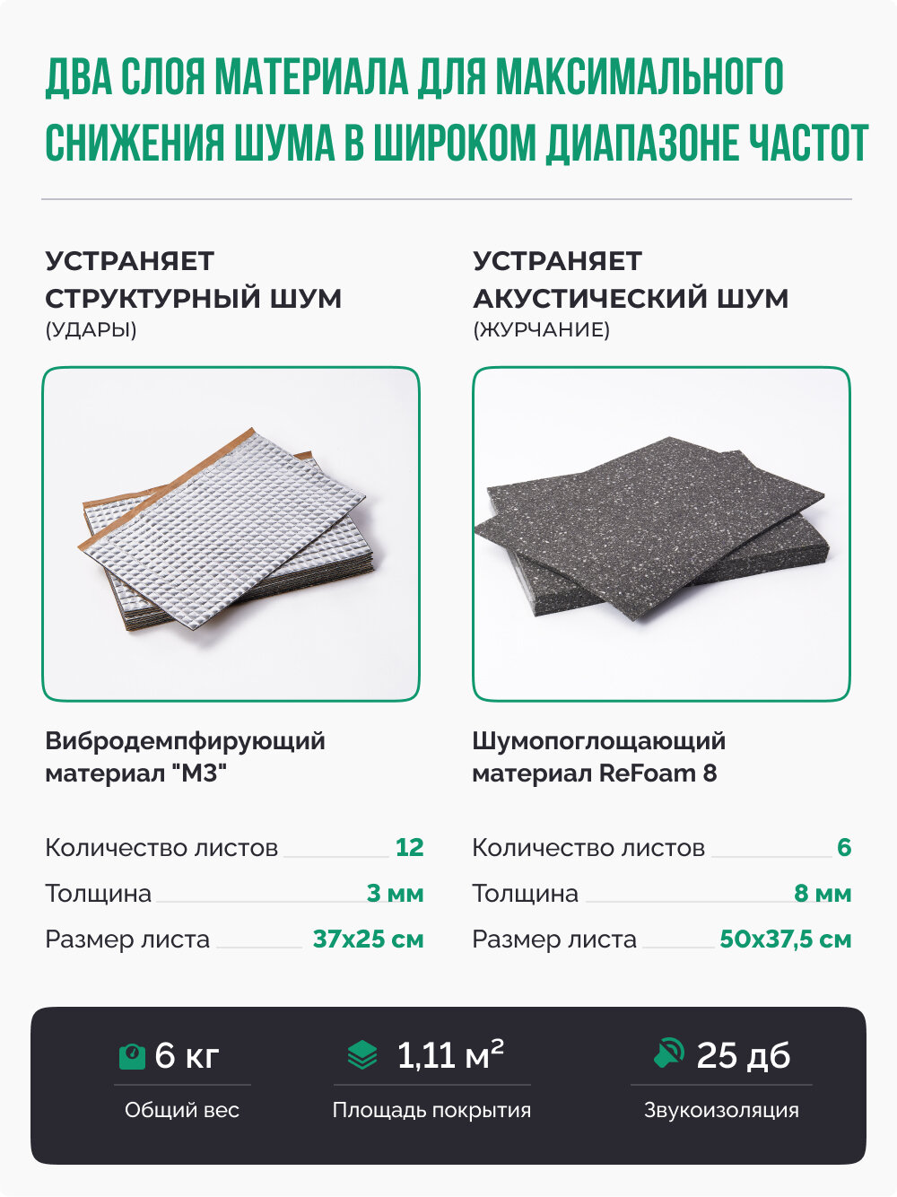 | Особенности | виброизоляция, самоклеящийся слой, теплоизоляция |