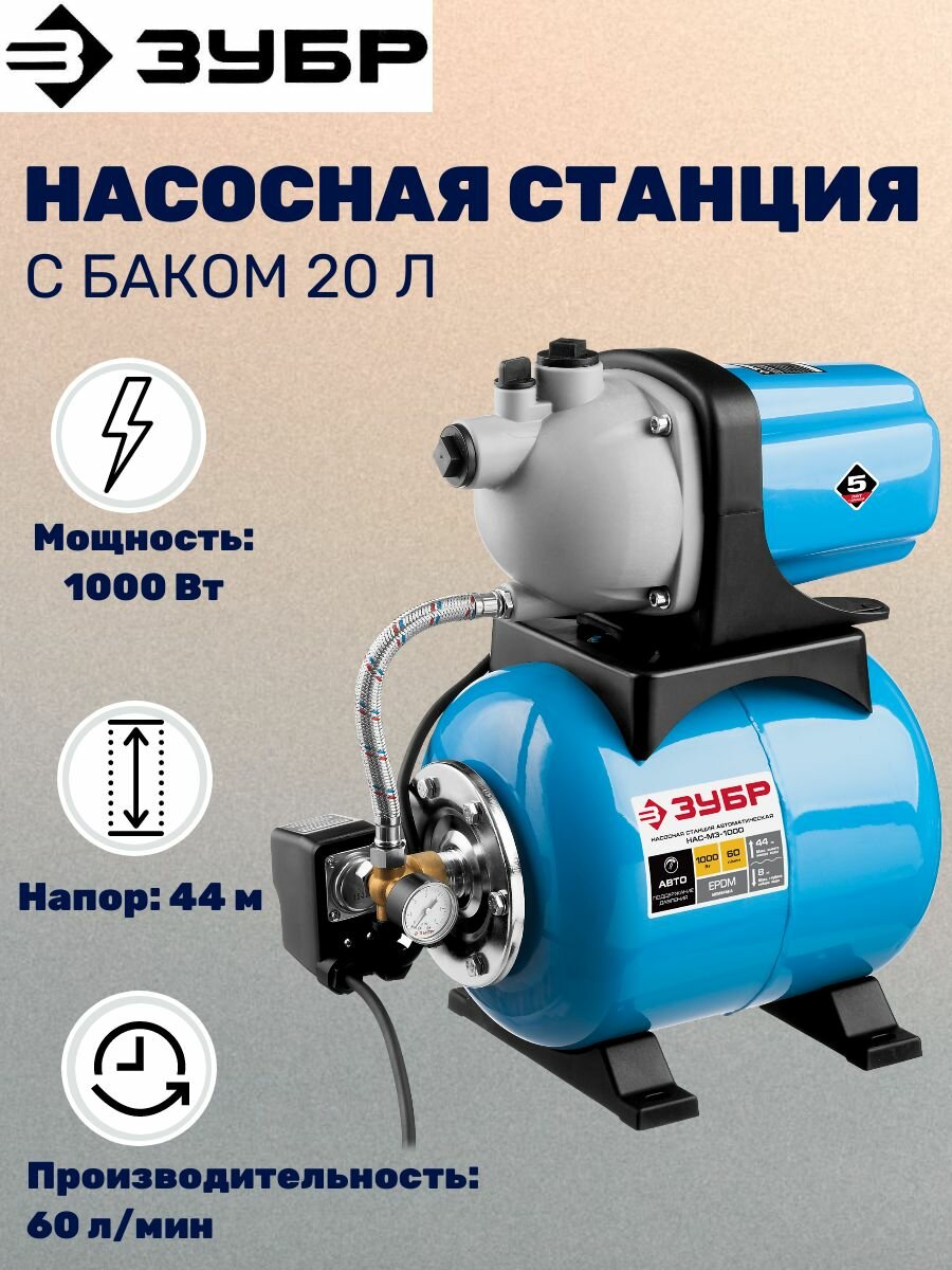 ЗУБР 1000 Вт, бак 20 л, автоматическая насосная станция (НАС-М3-1000)