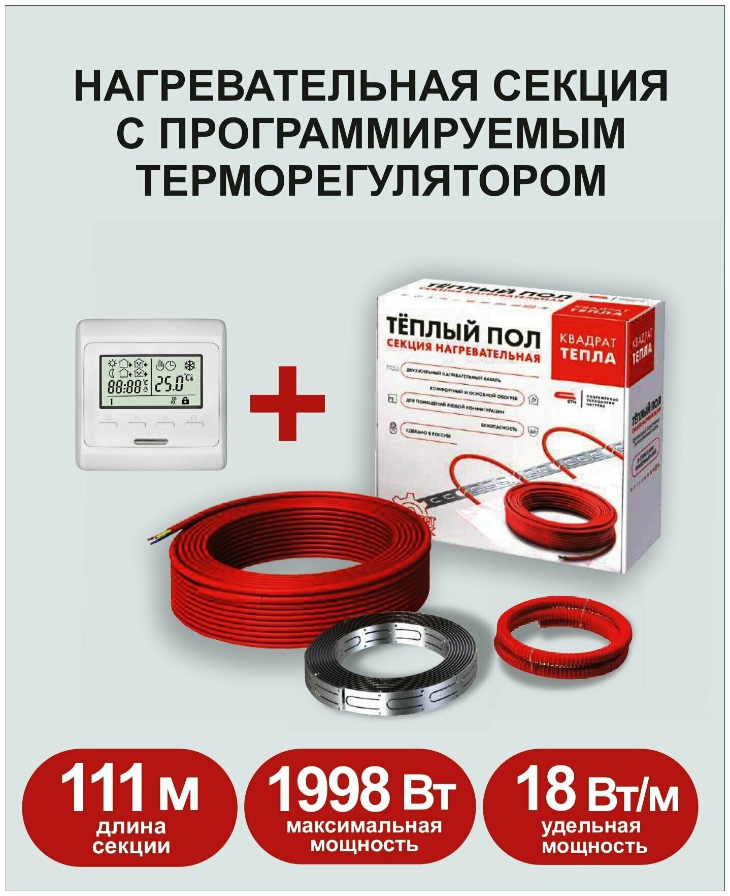 Теплый пол Квадрат Тепла 111 м-2000 Вт кабельный с терморегулятором