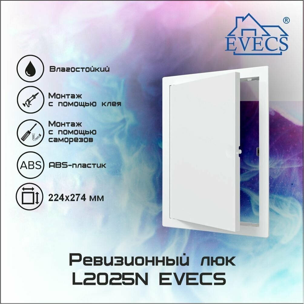Люк ревизионный EVECS L2025N, фланец 200х250 мм, рамка 224х274 мм, пластиковый, нажимной, белый