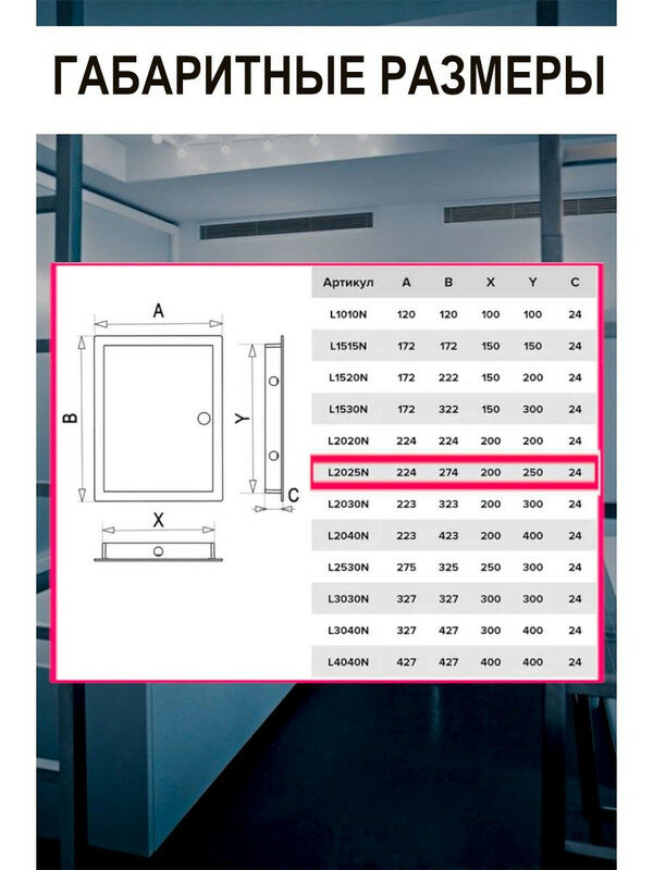 Люк ревизионный L2530N, 275х325 мм, фланец 250х300 мм, нажимной, ABC пластик