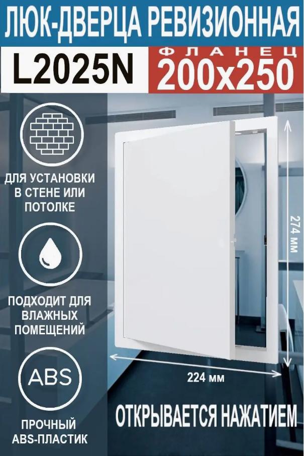 Люк ревизионный Evecs L2025N c фланцем 200х250 мм, нажимной, белый ABS-пластик (224х274 мм)