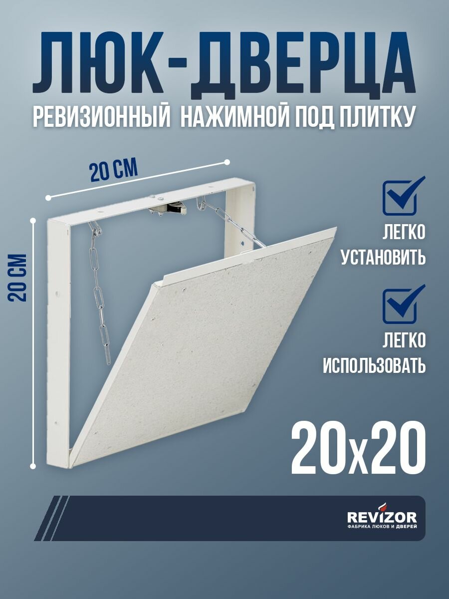 Купить Ревизионный люк съемный под плитку Т90 20х20см стальной скрытый нажимной сантехнический технологический
