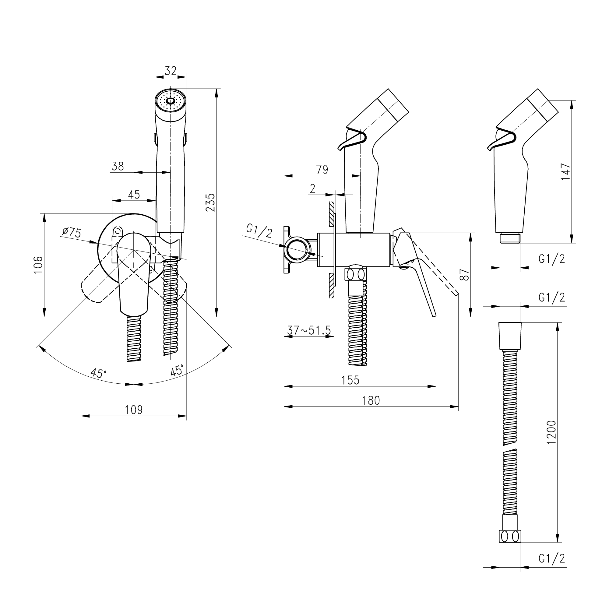 | Дополнительная информация | рукоятка, лейка гигиенического душа, подключение для шланга, шланг в металлической оплетке 1/2" 120см, паспорт изделия с гарантийным талоном, инструкция по эксплуатации |