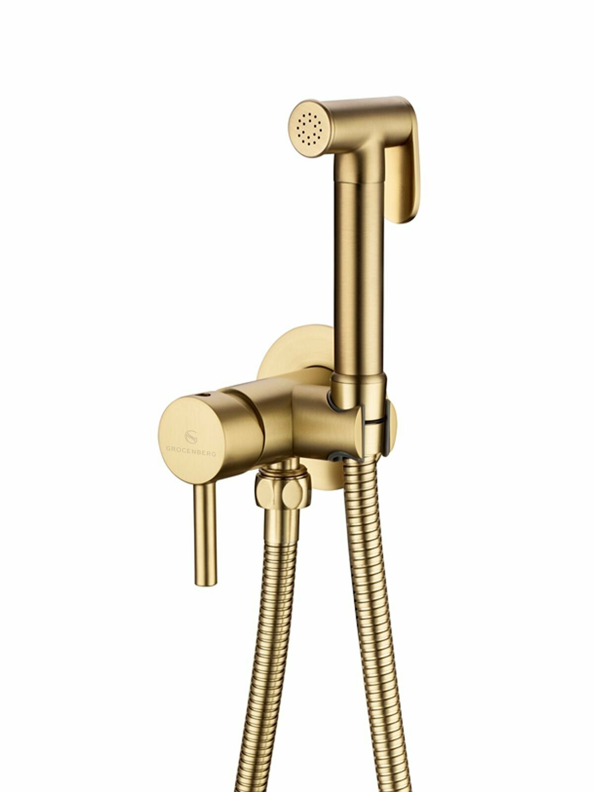 Смеситель встраиваемый с гигиеническим душем Grocenberg GB001GL золотой брашированный