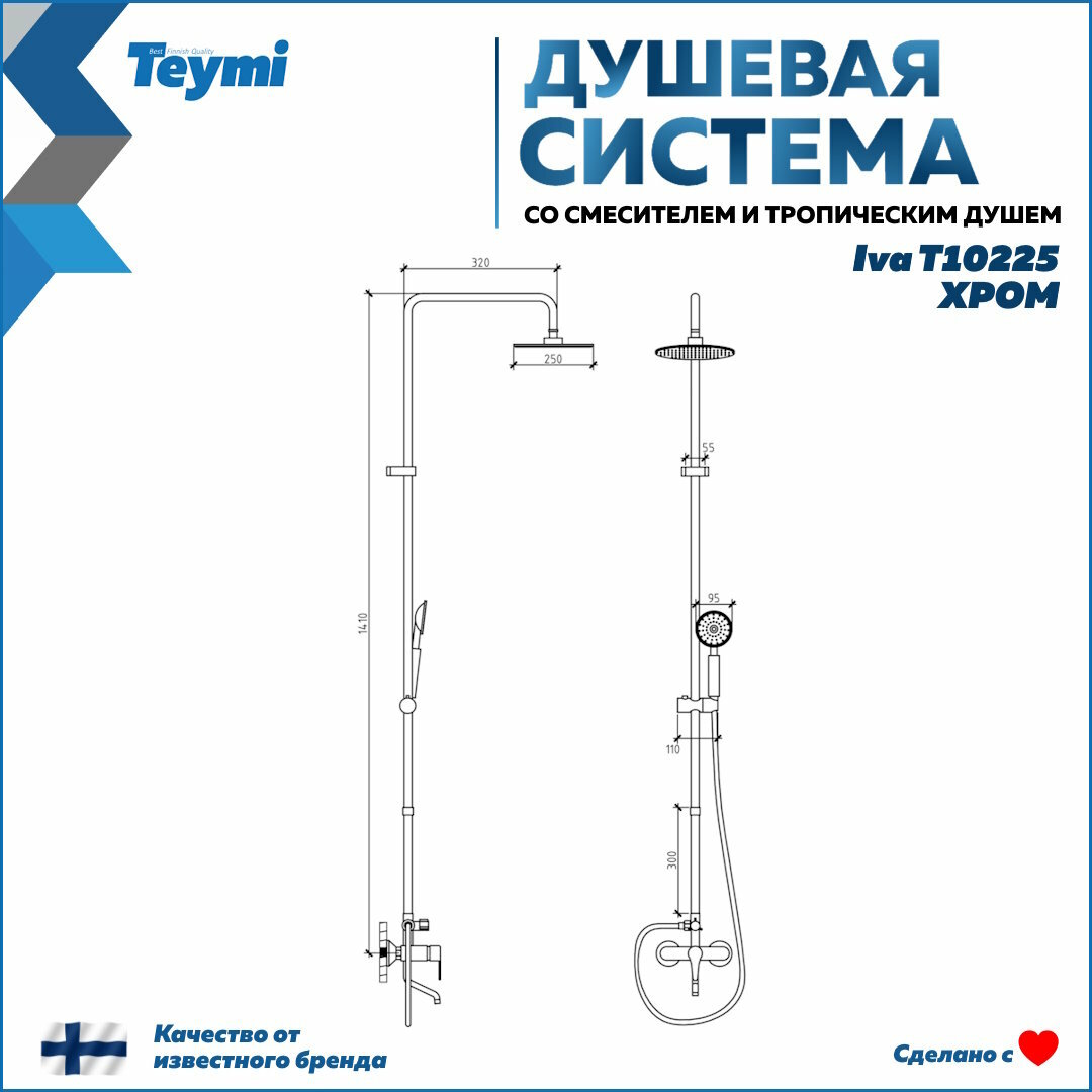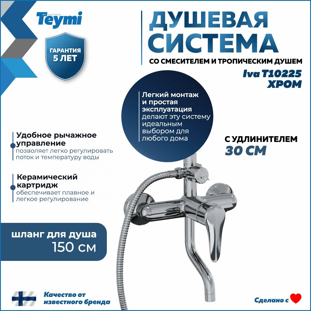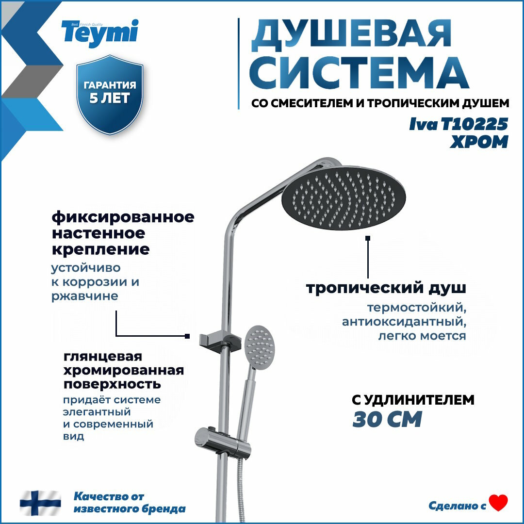Купить Комплект Teymi 2 в 1: Душевая система Iva хром + удлинитель 30 см из нержавеющей стали F10114
