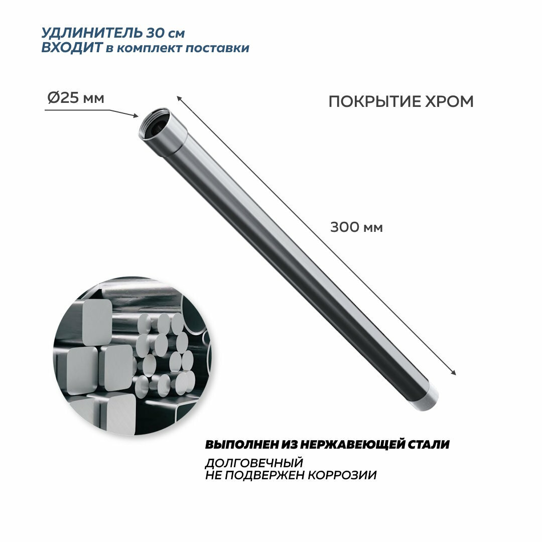 Комплект Teymi 2 в 1: Душевая система Iva хром + удлинитель 30 см из нержавеющей стали F10114 интересное: