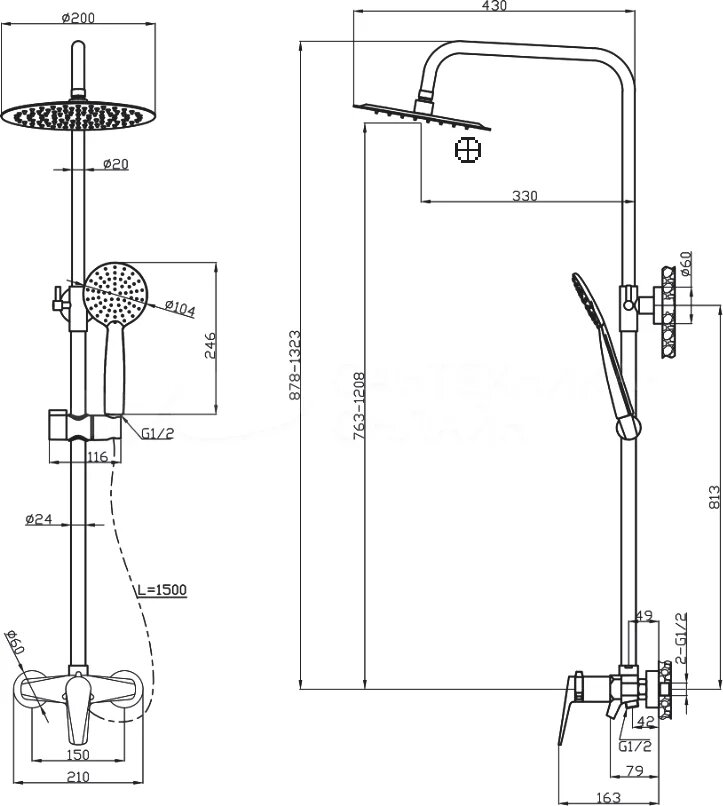 Душевая стойка без смесителя TOKITO