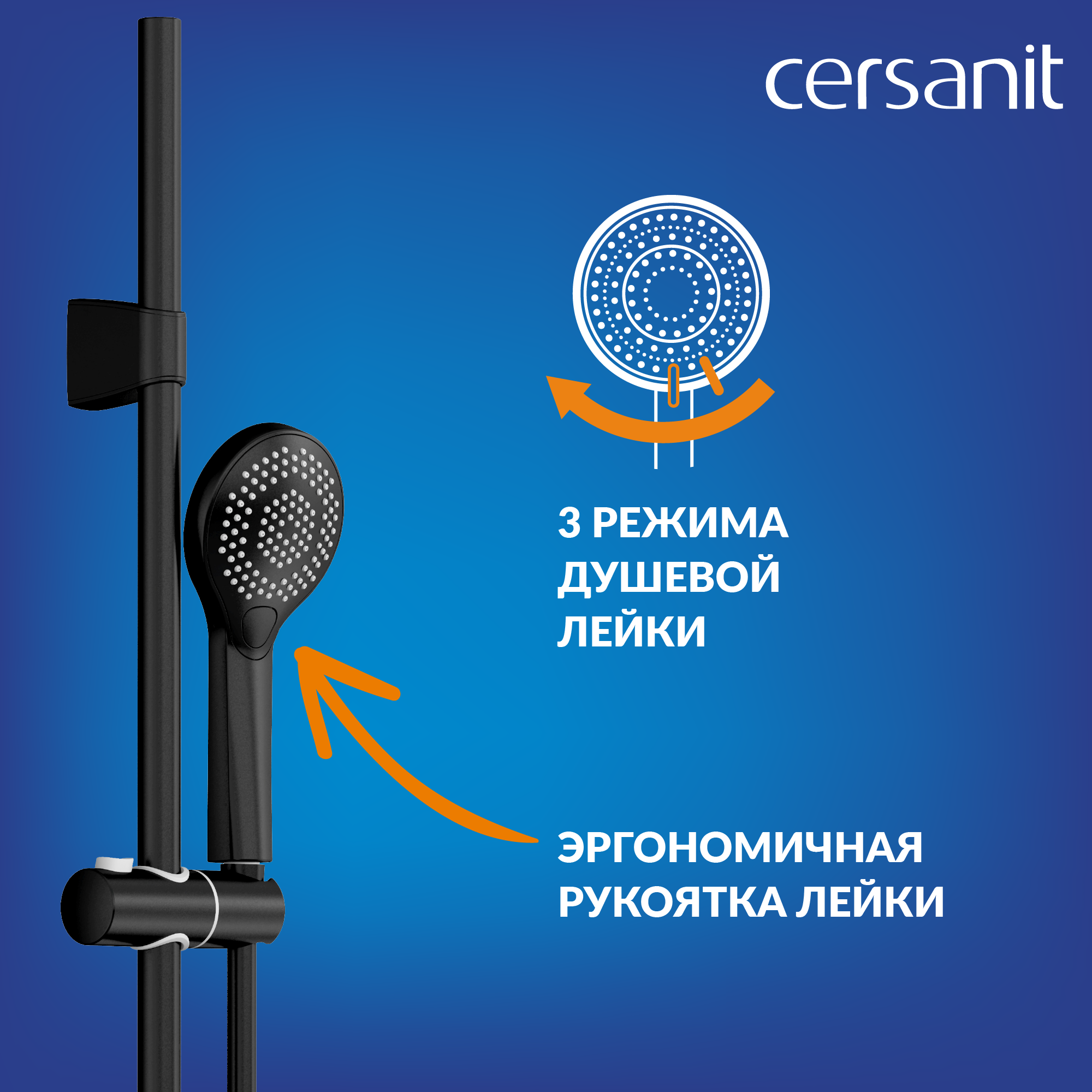 СохранитьДушевой гарнитур со стойкой и шлангом черный Cersanit NENO 3 режима 63696 интересное: