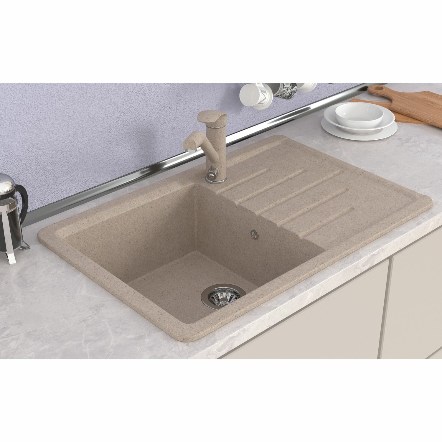 Раковина для кухни / Мойка для кухни Mixline ML-GMS07 с крылом, бежевый