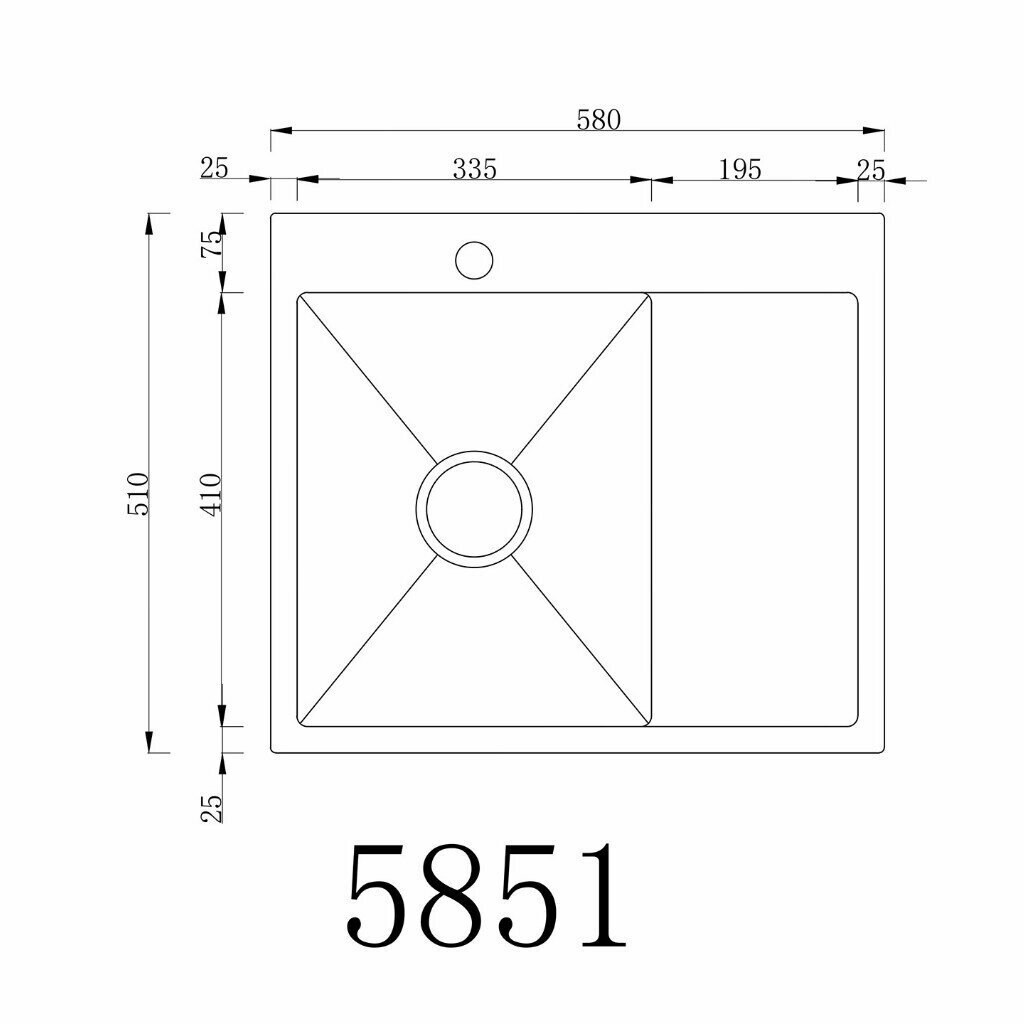 Кухонная мойка, РМС MRK-5851L, нержавеющая сталь, с правым крылом, дозатор, сифон, гарантия