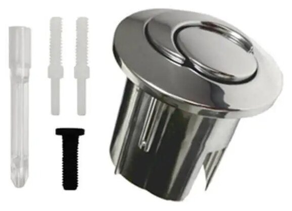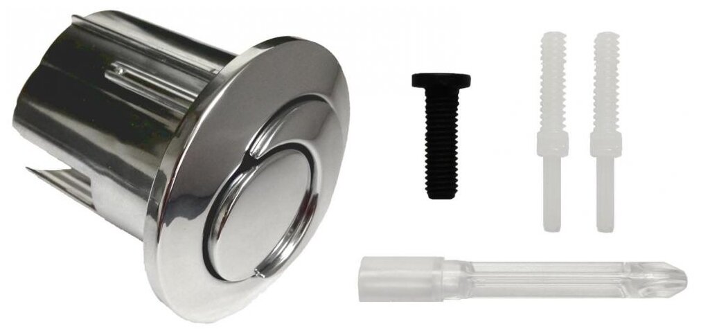 | Комплектация | Корпус кнопки слива, две клавиши спуска, две винтовых тяги, винт фиксации, ключ для установки. |