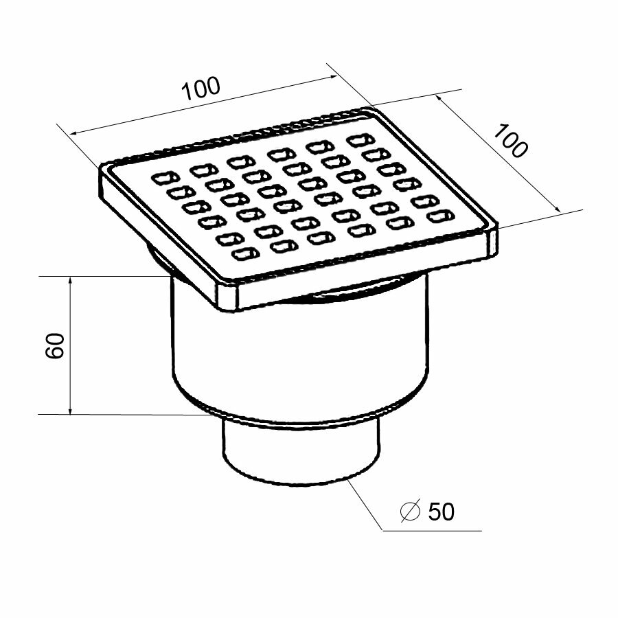 Трап пластиковый Loranto LINE прямой сток, решетка из нержавеющей стали 100х100 30120A050K0101