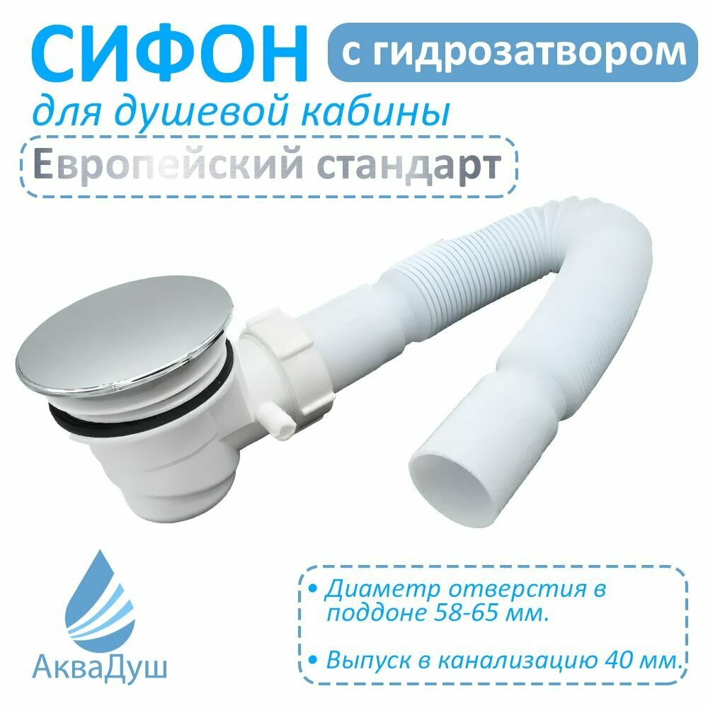 Сифон для душевой кабины, евро, с гидрозатвором, диаметр отверстия в поддоне 58-65 мм. интересное: