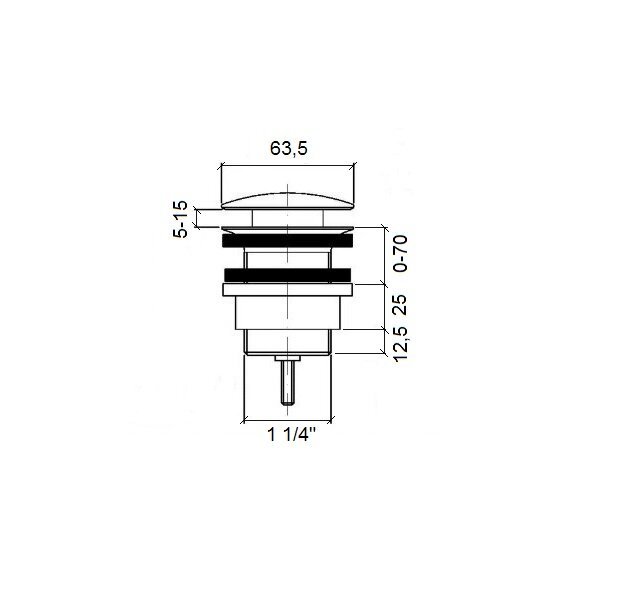 Донный клапан GANZER F-09C, латунь, черный, с переливом, выпуск 1 1/4", 60x32 мм