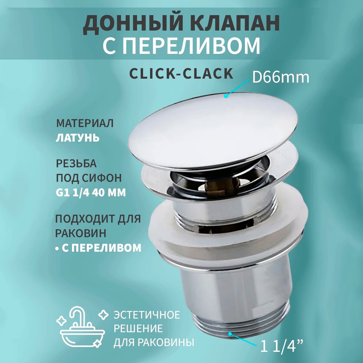 Донный клапан для раковины с переливом