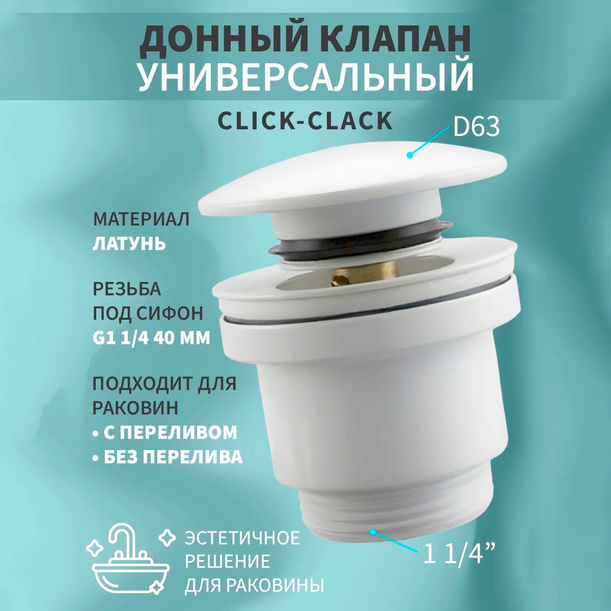 Донный клапан для раковины с переливом белый