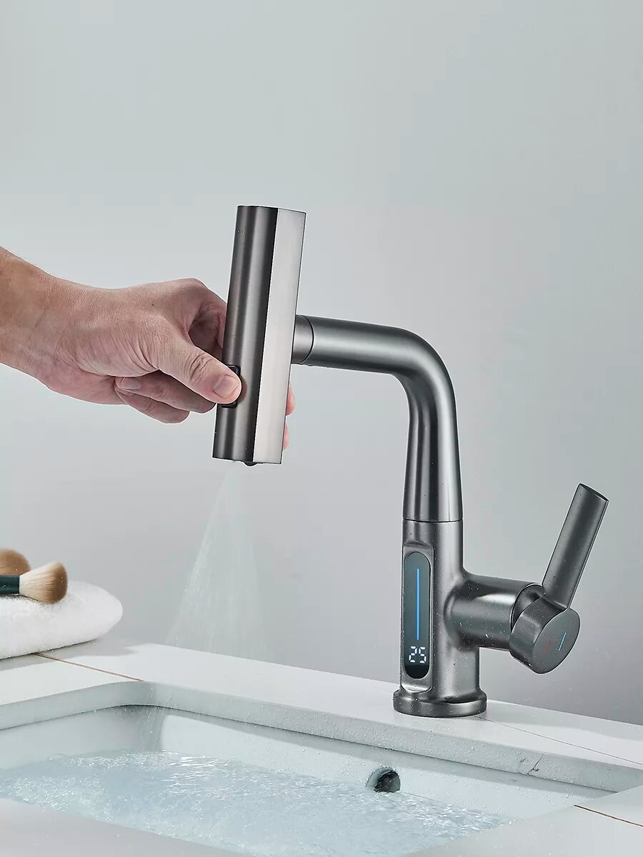 Кран для раковины с выдвижным изливом интересное: