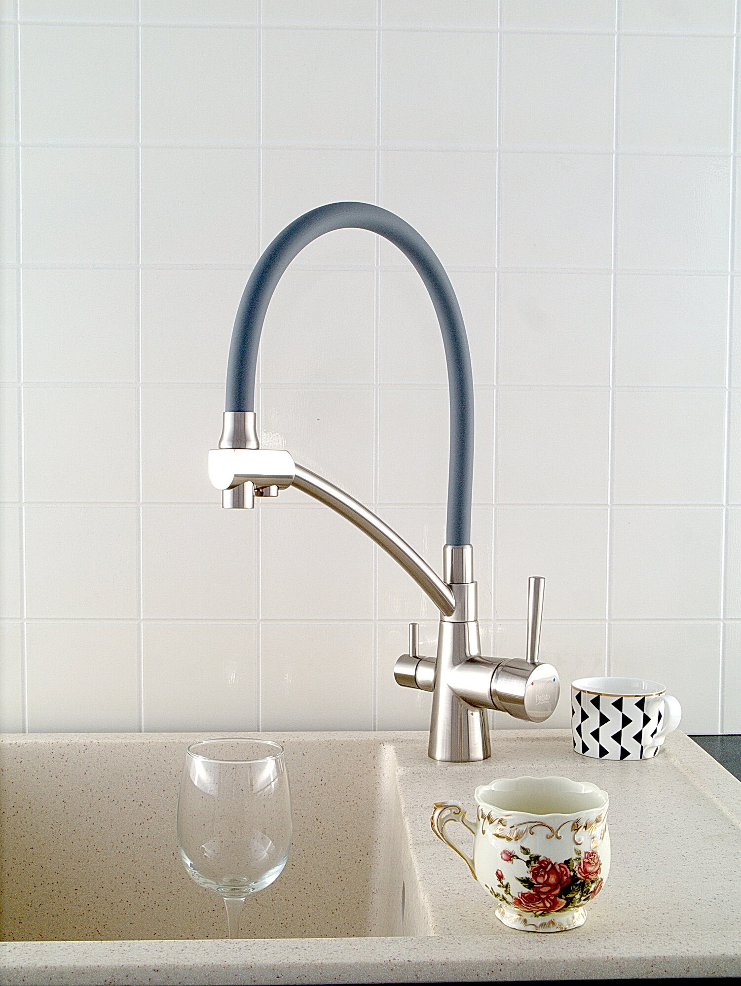 Смеситель для кухни с краном для питьевой воды Potato Серый-Хром P4077-19