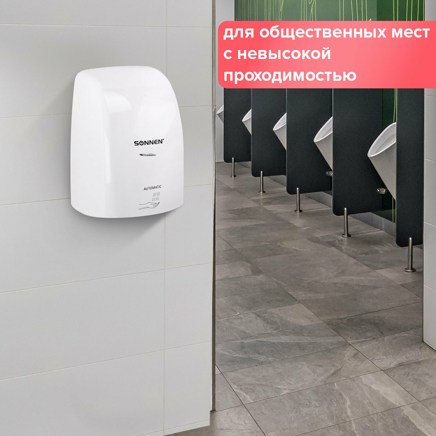 Сушилка для рук Sonnen высокоскоростная HD-FL-2009, 1200Вт, пластиковый корпус, белая, 607959