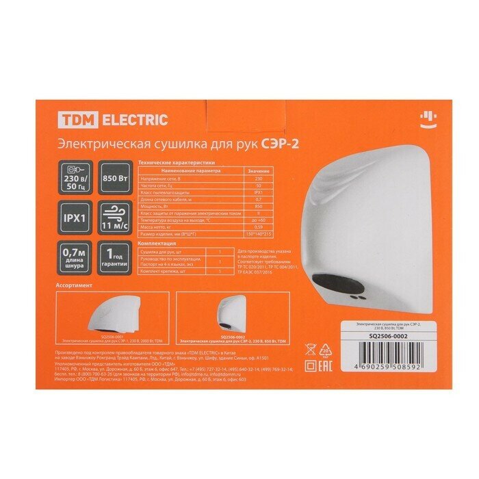 Сушилка для рук Tdm Electric СЭР-2, 230 В, 850 Вт интересное: