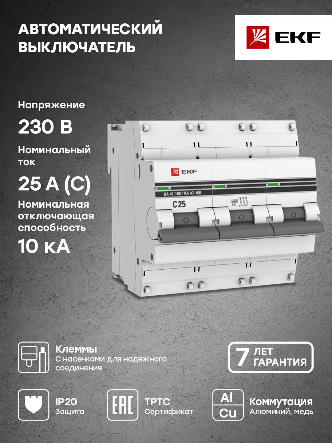 СохранитьВыключатель автоматический 3-пол. (3P) 25А C 10кА ВА47-100 PROxima EKF интересное: