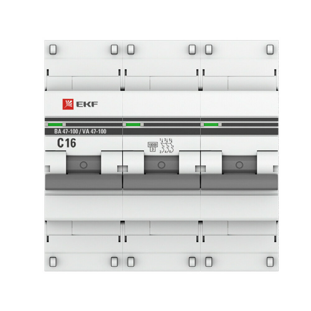 Выключатель автоматический трехполюсный 10А C ВА 47-100 10кА PROxima , EKF MCB47100-3-10C-PRO (1 шт.)