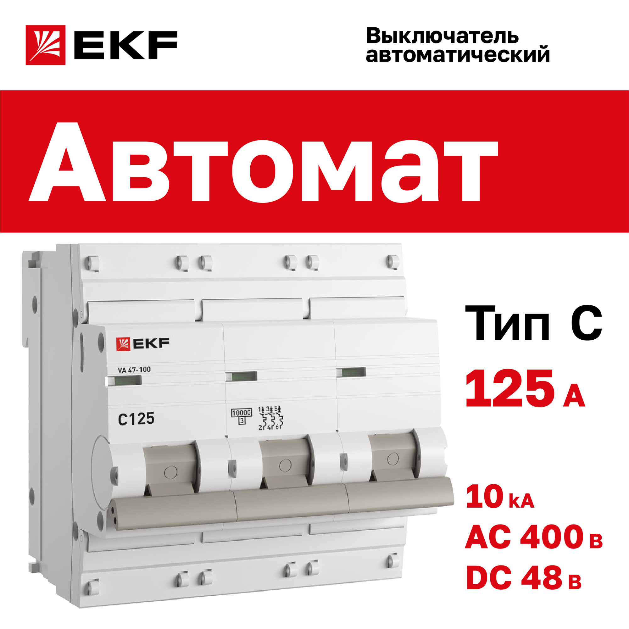 Трехполюсный автомат EKF ВА47-100 PROxima C 125А 10кА