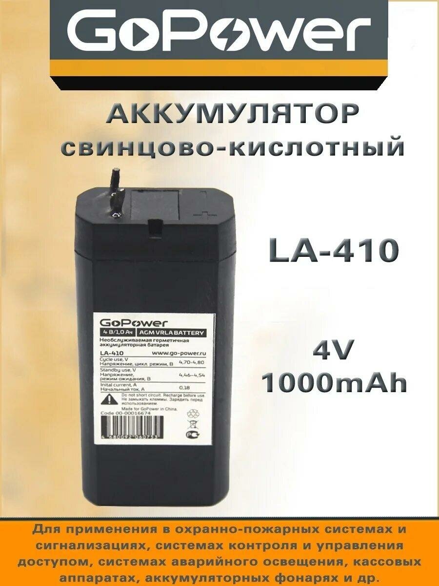 GoPower Аккумулятор свинцово-кислотный LA-410 4V 1.0Ah 00-00016674