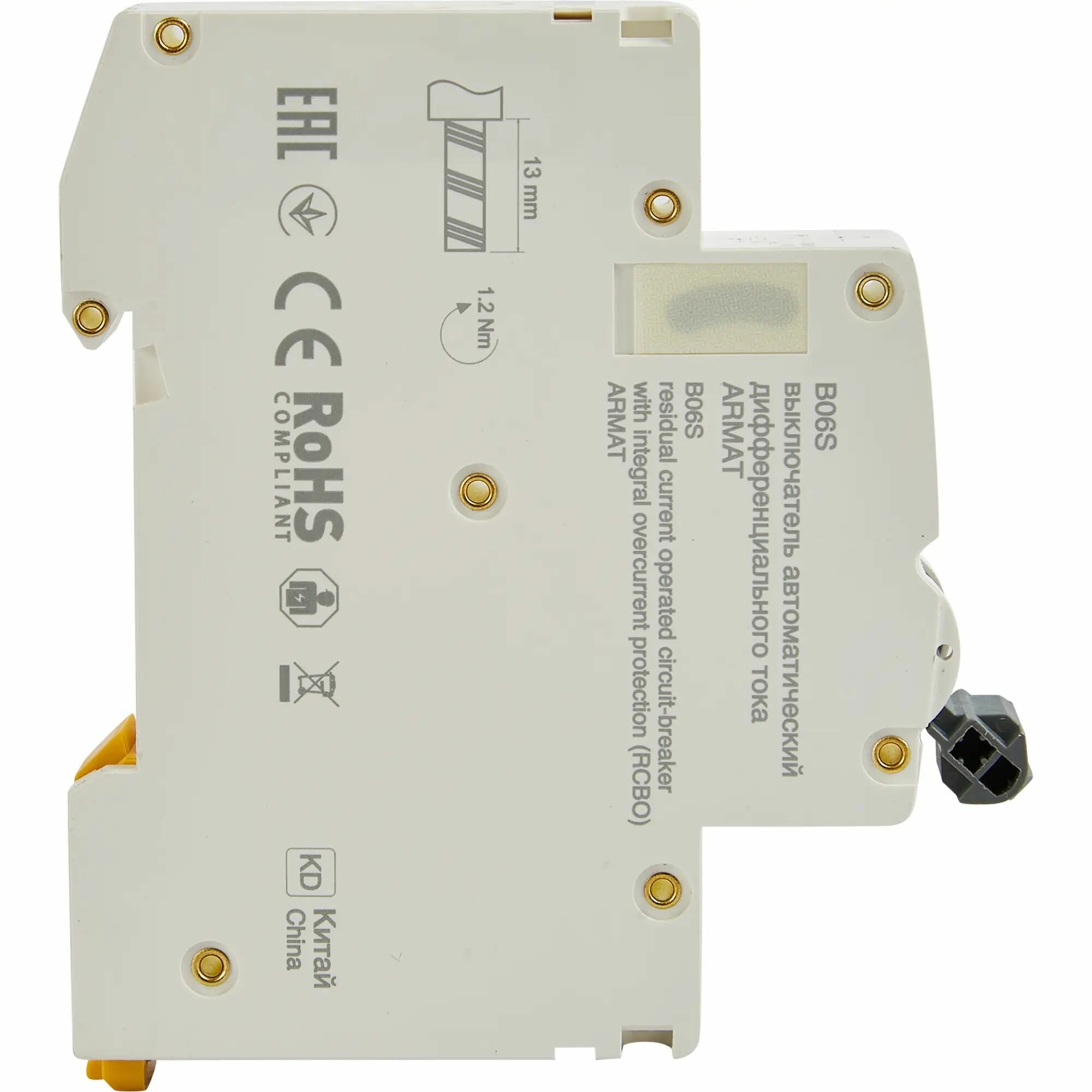 AR-B06S-1N-C20C030 Дифференциальный автоматический выключатель IEK ARMAT B06S 1П+N 20А 30мА, тип AC, 6кА, C