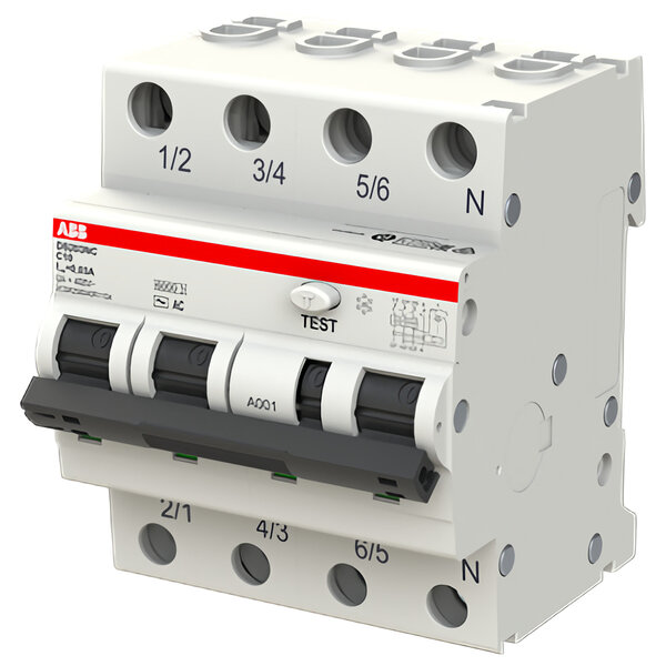 DS203NC C6 AC30 дифференциальный автоматический выключатель 3P+N, 6A, 30mA, тип AC, 6kA (хар-ка C) ABB, 2CSR256040R1064