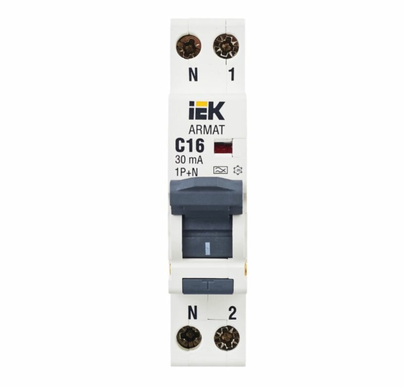 Автоматический выключатель дифференциального тока IEK ARMAT B06S 1P+NP C16 30мА тип A (18мм) AR-B06S-1N-C16A030