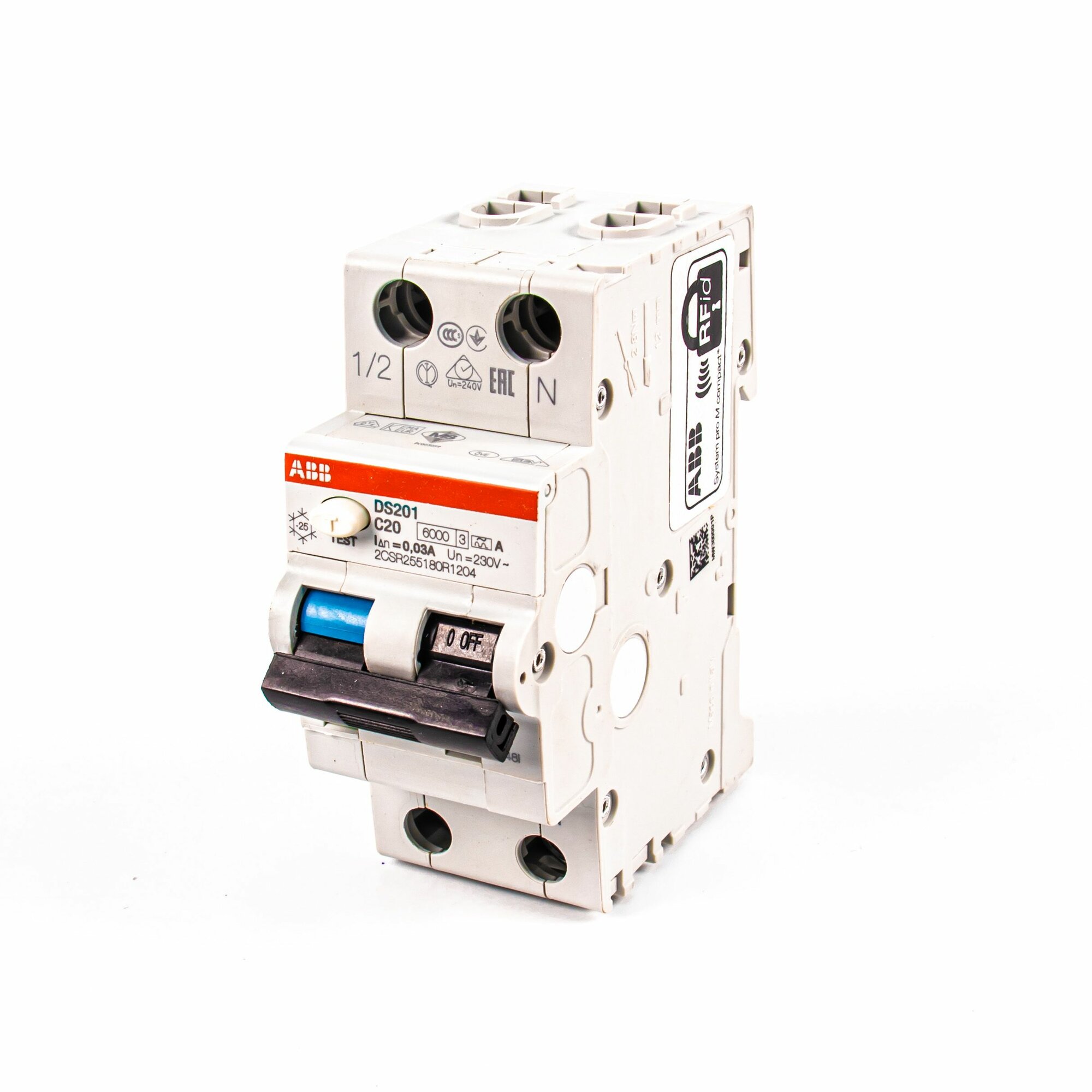 Автоматический выключатель дифференциального тока (АВДТ) ABB DS201 new, 20A, 30mA, тип A, кривая отключения C, 2 полюса, 6kA, электро-механического ти