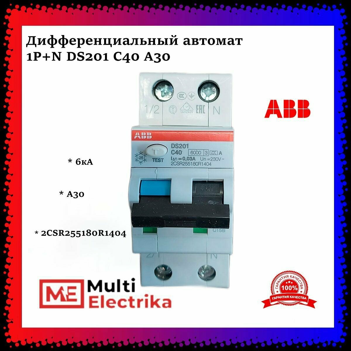 Купить DS201 C40 A30 тип А диффавтомат 6kA ABB 2CSR255180R1404