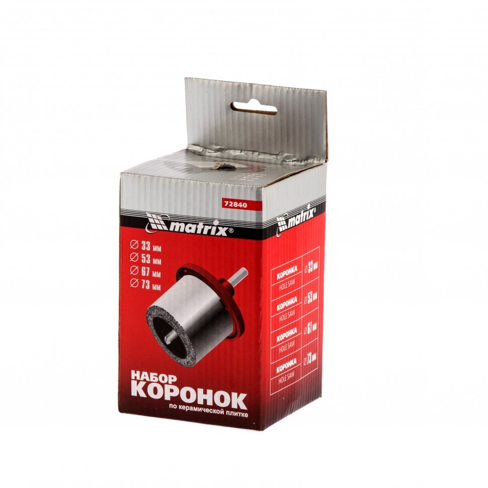 Купить Набор коронок по керамической плитке, 33-53-67-73 мм, шестигранный хвостовик Matrix 72840