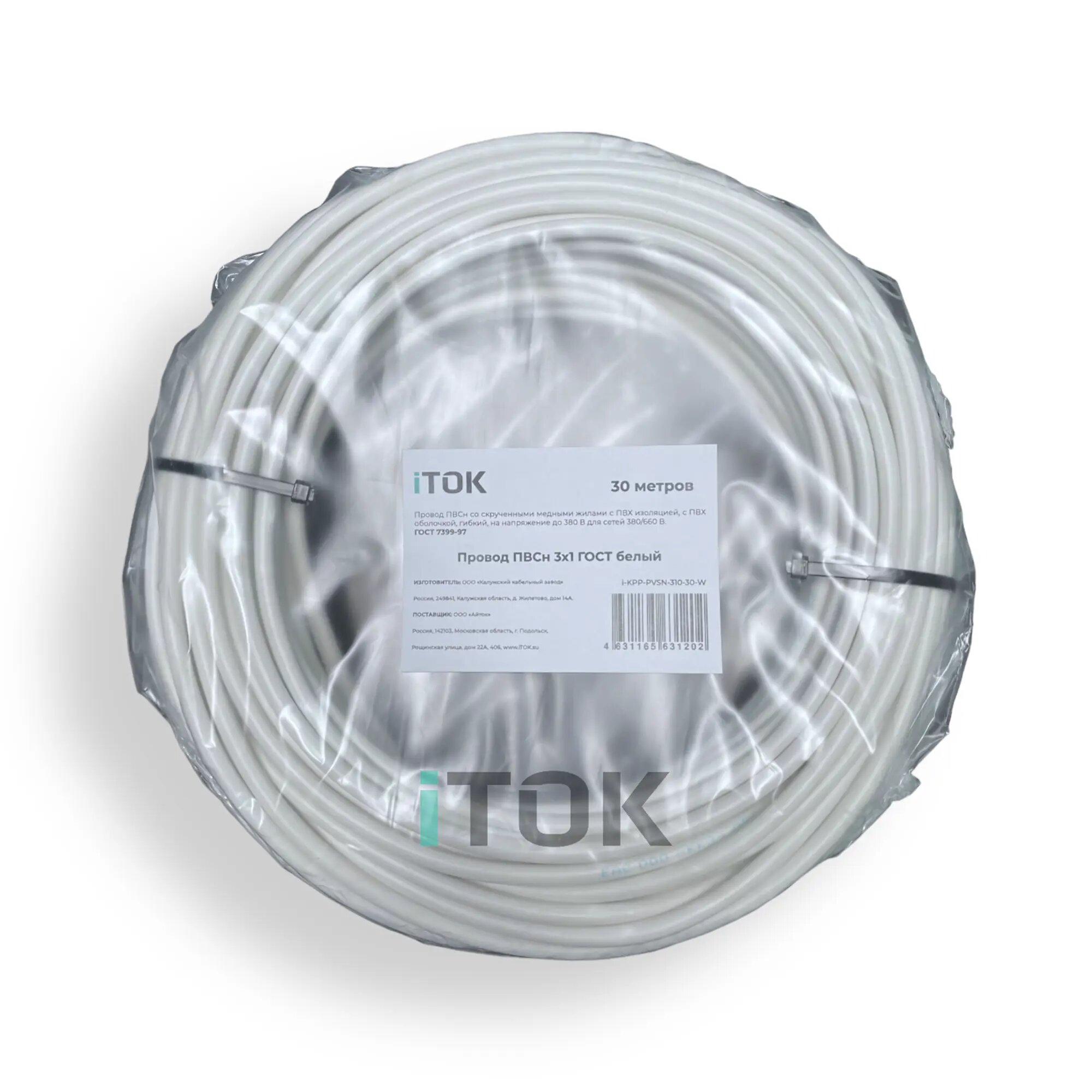 Провод ПВС 3х1,0 ГОСТ, 35 метров. Белый. Калужский кабельный завод