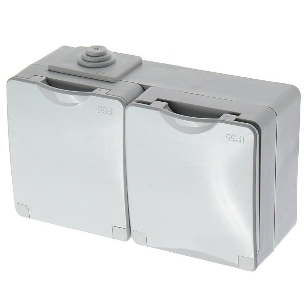 ЭРА Блок Эксперт 11-7602-03 накладной IP65 16А(10AX) 250В серый горизонтальный розетка с выключателем двухклавишн