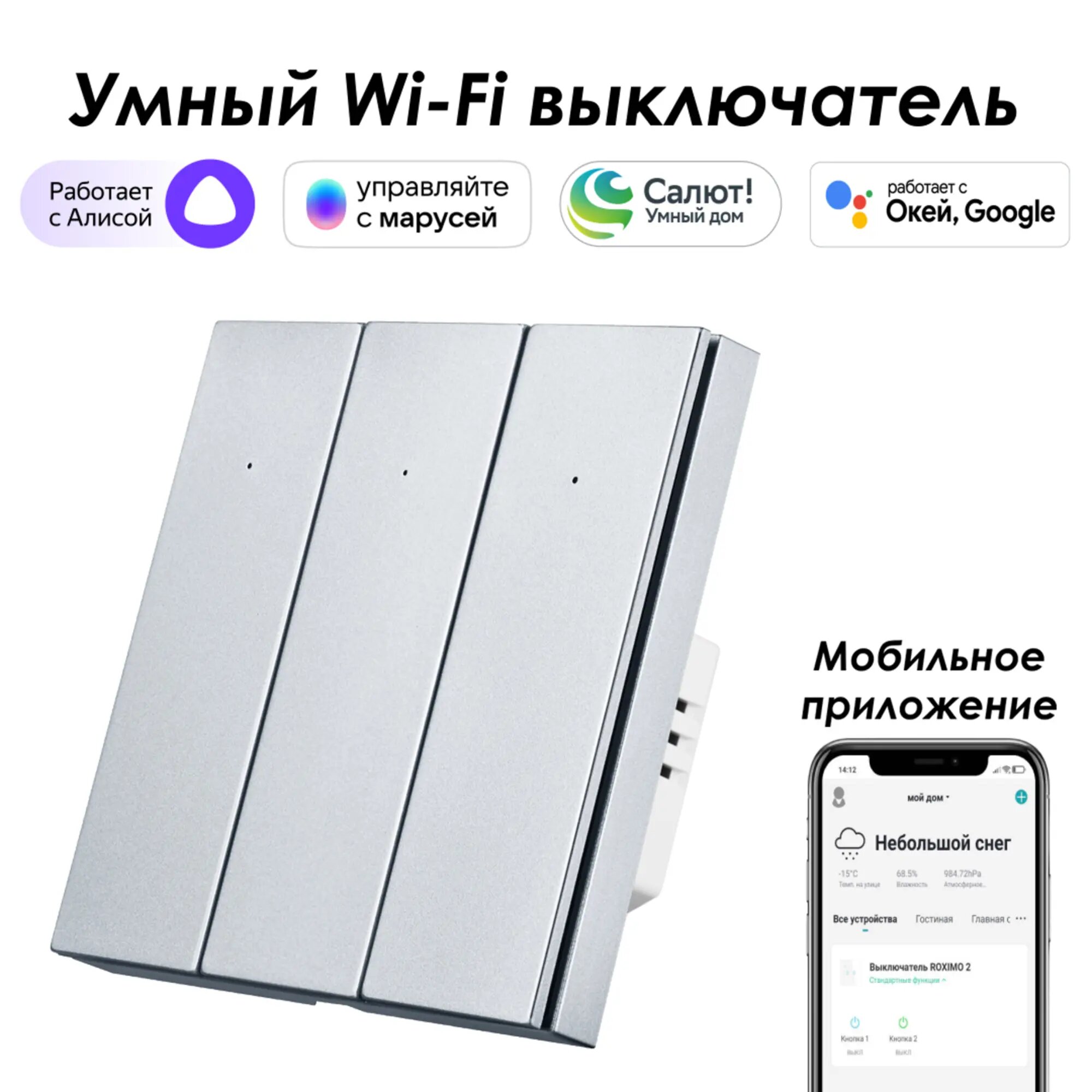 СохранитьУмный выключатель Roximo , трехкнопочный, SWBTN01-3 интересное: