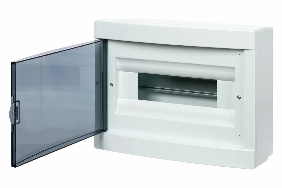 Щит распределительный навесной 8 модулей (230х102х175, пластик, с дымчатой дверцей, IP41)